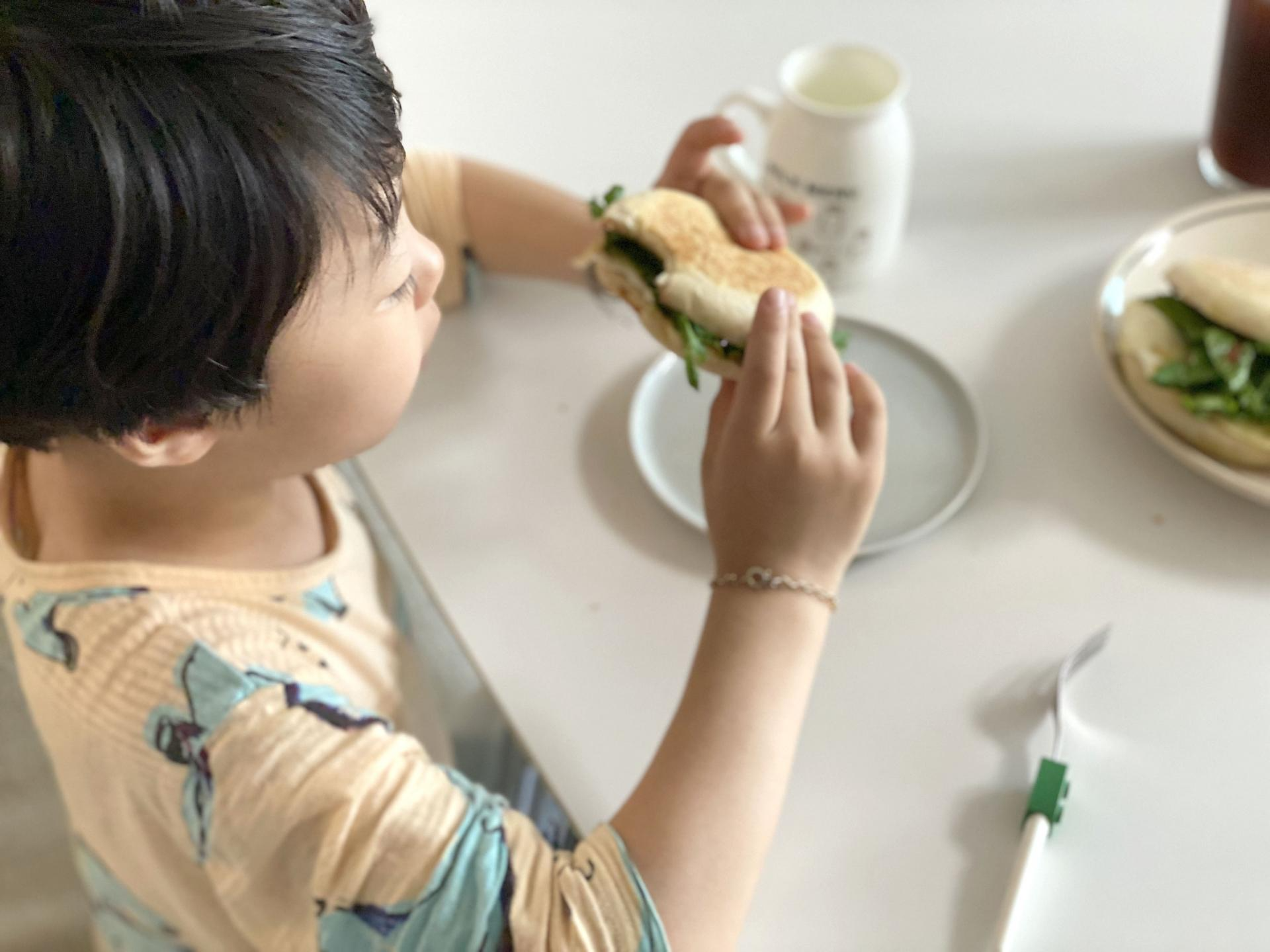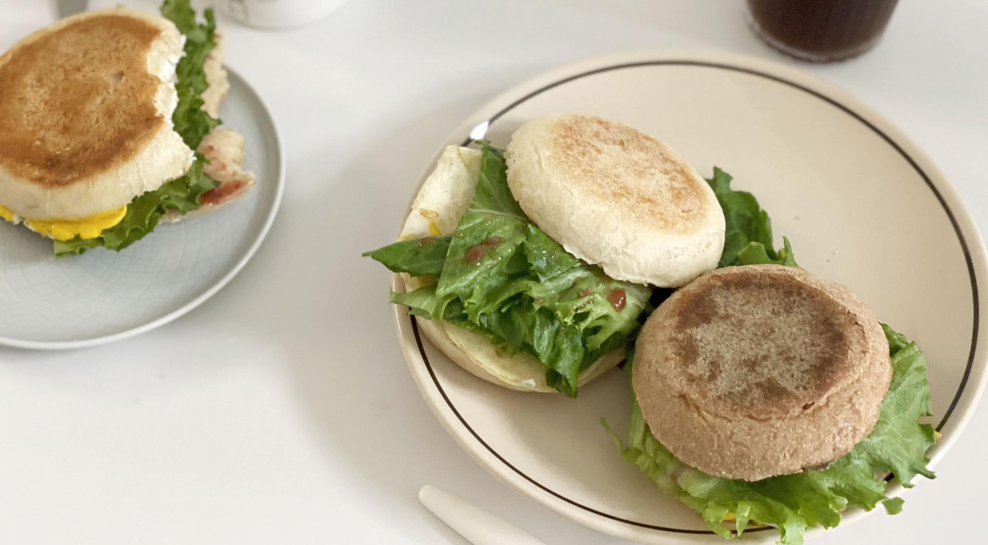 머핀을 반으로 갈라 오픈샌드위치를 만들어보세요.